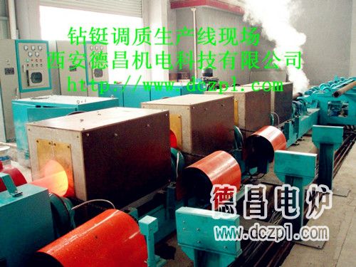 鉆鋌中頻爐調質生產線 目前鉆鋌熱處理設備主要采用兩種加熱方式,一種是步進燃氣爐加熱,另一種是感應爐電加熱;電加熱感應爐也分為兩種型式,工頻感應加熱爐和中頻感應加熱爐。 步進燃氣爐,因為投資較大,很少被生產廠家采用。