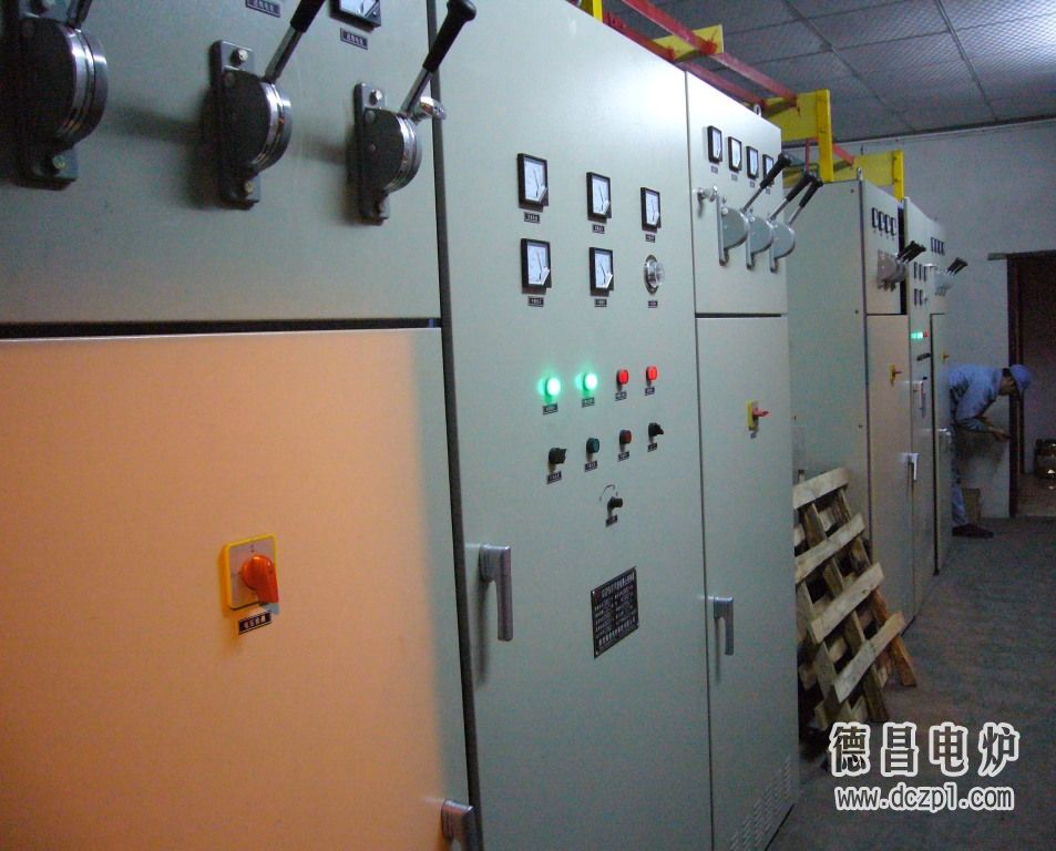 基本配置:兩臺爐體、兩套電源、換爐開關、10KV變壓器、高壓柜、低壓柜。傾爐爐蓋用液壓泵站,遠程操縱箱。
